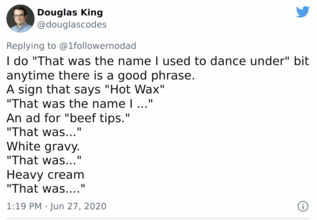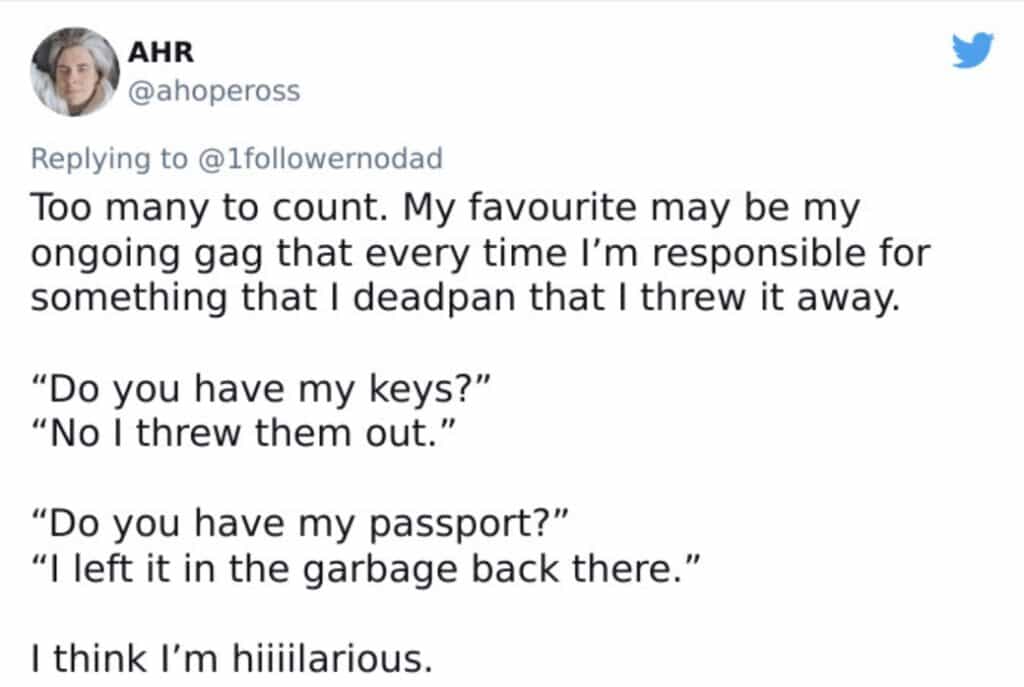 Whenever I am about to turn onto a busy street, no matter what speed I’m going, I like to tell my husband and son to “hold onto your butts” and it cracks my kid up every time. My husband, not so much.