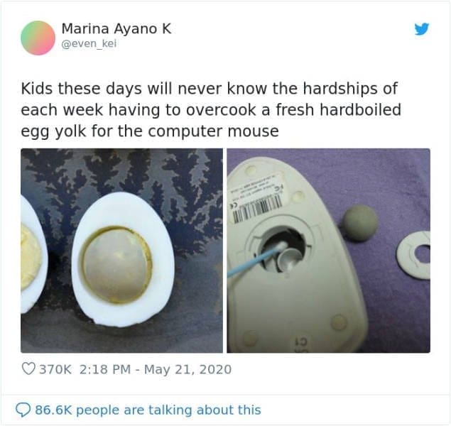 People reminisce about the old “egg yolk mouse hassle” (A Thread)