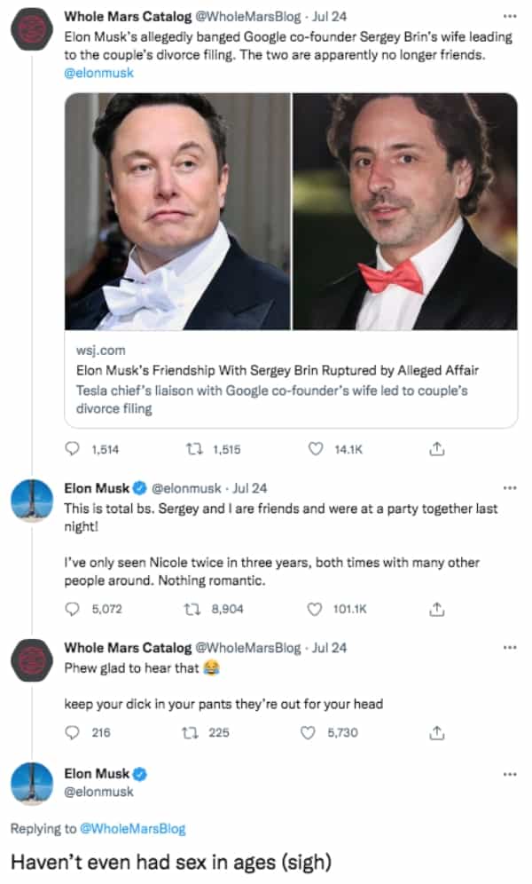 Elon Musk said he hasn’t gotten any action in a LONG time and the internet isn’t having it (THREAD)