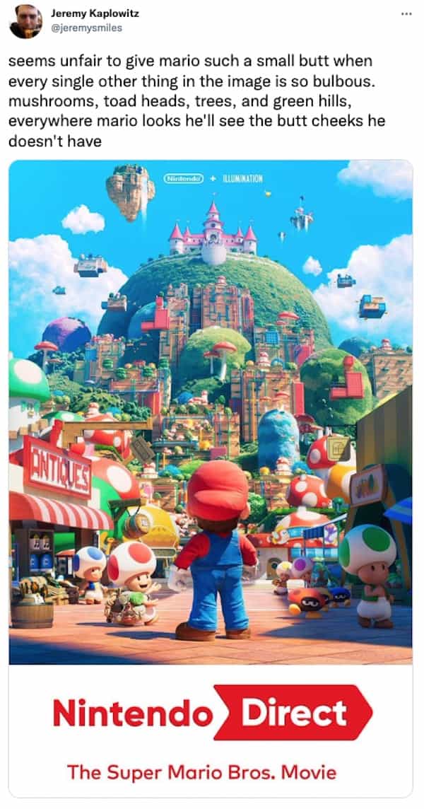 The internet is LIVID that they took away Mario’s booty in the new movie (20 Memes)