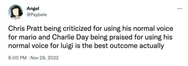I honestly do get some of the reaction. I don’t think I’m alone in wishing that the studio had gone with the classic Charles Martinet to voice Mario. Yes, it would have been dope, but I get why all animated movies need the big names these days.