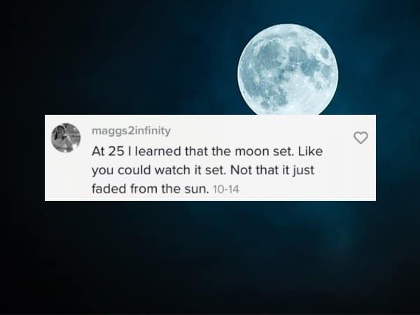 I really thought there was a man in the moon. Looking at the moon, it looked like a man in bed and was stretching