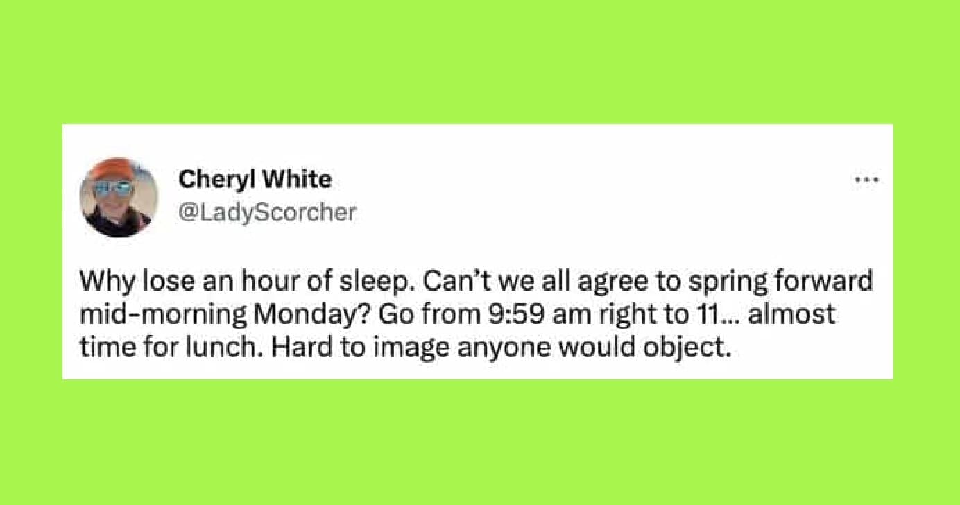 To all Arizonans, hawaiians, and non Americans, I wish you a happy not Day Light Saving day.