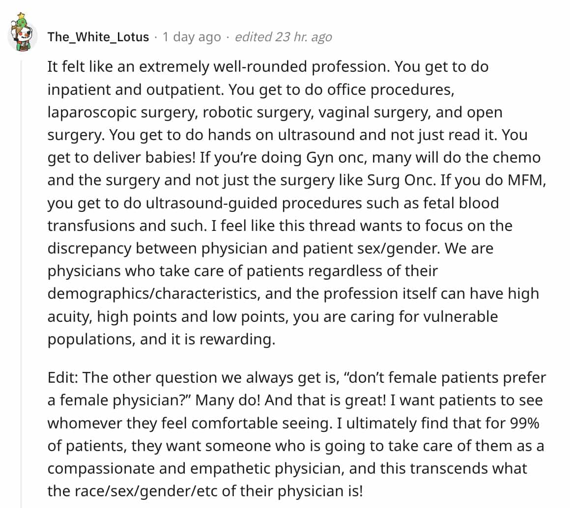 One response to “15 Male Gyno’s Were Asked to Be Completely Honest About Their Jobs”