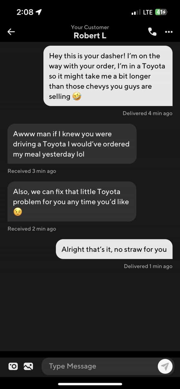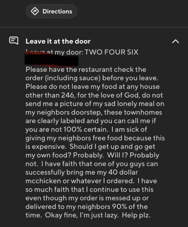 One response to “25 Funny Door Dash Interactions That Highlights the Insanity of Delivery Apps”