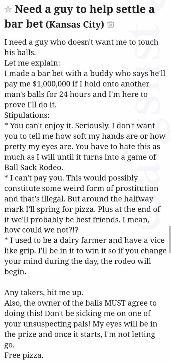 One response to “25 of the Weirdest Craigslist Ads You Might Want to Avoid”