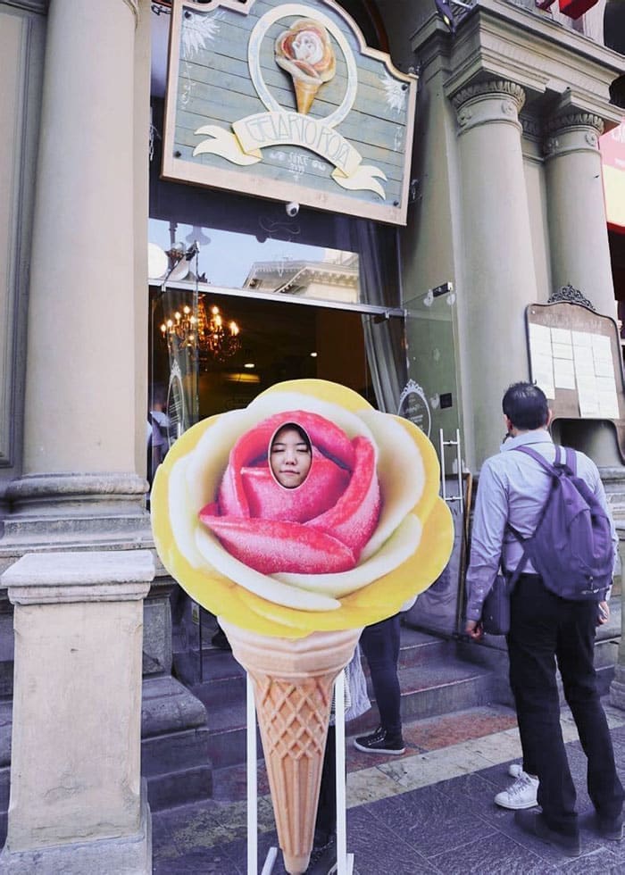 Exploring the realm of tourist spots and theme parks, these photos spotlighted the quirky interactions people have with face cutouts. The internet is brimming with these comical moments, each capturing a slice of humor and playfulness that adds a spark to travel snapshots.