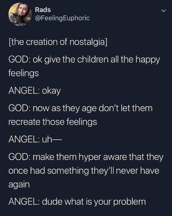 Ah, the beauty of memes—where despair meets hilarity and gloom gets a makeover into chuckles. In this compilation of 36 memes, prepare to witness the strange alchemy of melancholy humor that somehow manages to uplift your spirits. From jokes about existential dread to the irony of life's absurdities, these memes are a rollercoaster of emotion wrapped in a layer of dark, sardonic wit.