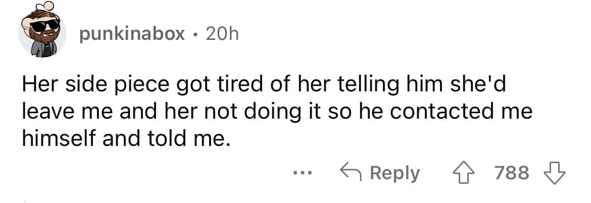 Cheating red flags The person she cheated on me with messaging me on Facebook saying "nice ring you bought her, felt good up my an " .. funny in retrospect