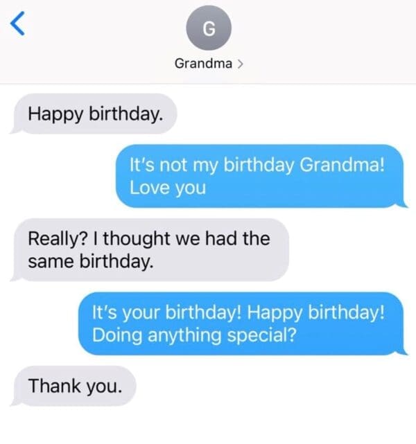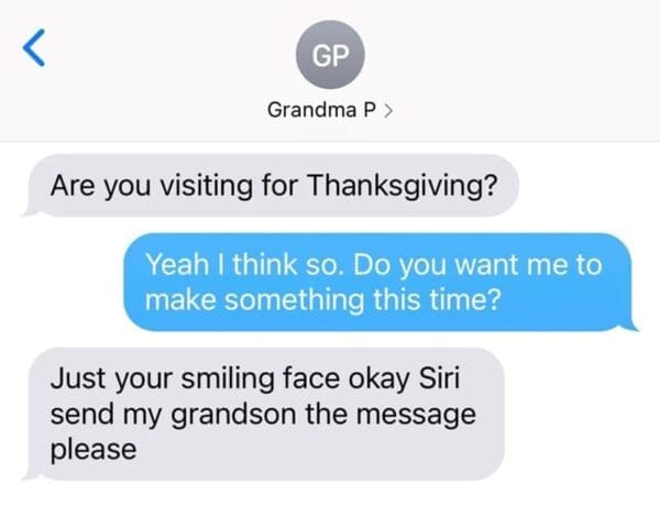 Get ready for a symphony of chuckles and warm, fuzzy feelings as you dive into these 23 exchanges, folks. Online, these glimpses into the realm of grandparent tech mishaps and accidental humor are like virtual warm hugs that bring smiles to faces far and wide. After all, nothing warms the heart like grandpa's attempt to use the voice-to-text feature that turns "thinking of you" into "thanking of tofu."