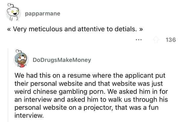 And as we wrap up this journey through the land of employment blunders, remember this: those 38 resumes are just a drop in the ocean of the world's workplace woes. If you're eager for more career-based chuckles that make you grateful you at least have a job, dive headfirst into the abyss of job interview mishaps, awkward CV fails, and the black hole of funny office blunders. Because let's face it, the world of employment misadventures? It's a bottomless pit of laughter that keeps on giving, even if it's at the expense of someone else's job prospects.
