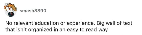 Get your cringe-proof goggles on as we unveil 38 resumes that redefine the art of 'career self-sabotage.' These bad boys aren't your typical lackluster resumes; they're more like a cavalcade of hilariously disastrous attempts at employment that make you wonder if the applicants were sleep-deprived or just trying to win a bet on who could craft the most absurd document. From fonts that seem stolen from a ransom note to job experiences that read like entries from someone's wild dream journal, these resumes aren't just the cherry on top of the cake of bad ideas, they're the whole rotten cake itself. They give hiring managers a good chuckle, but probably not a callback. People devour these posts faster than they ditch their Monday morning meetings because, let's face it, there's a strange joy in witnessing other people's employment fails, especially when you're stuck in the perpetual circus of the nine-to-five grind. Get ready for a rollercoaster ride of 'What were they thinking?' moments that'll make you clutch your own resume in desperation.