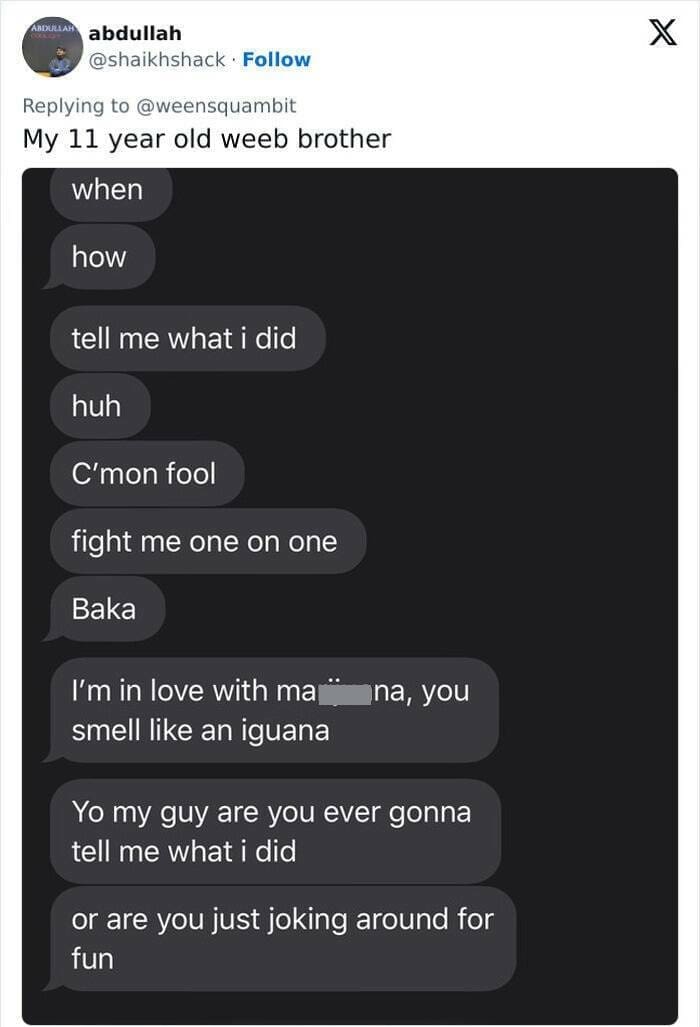 Gen Z Texting my little brother loves me You are an idiot 4:25 PM 5:08 PM A double decker dumbas
