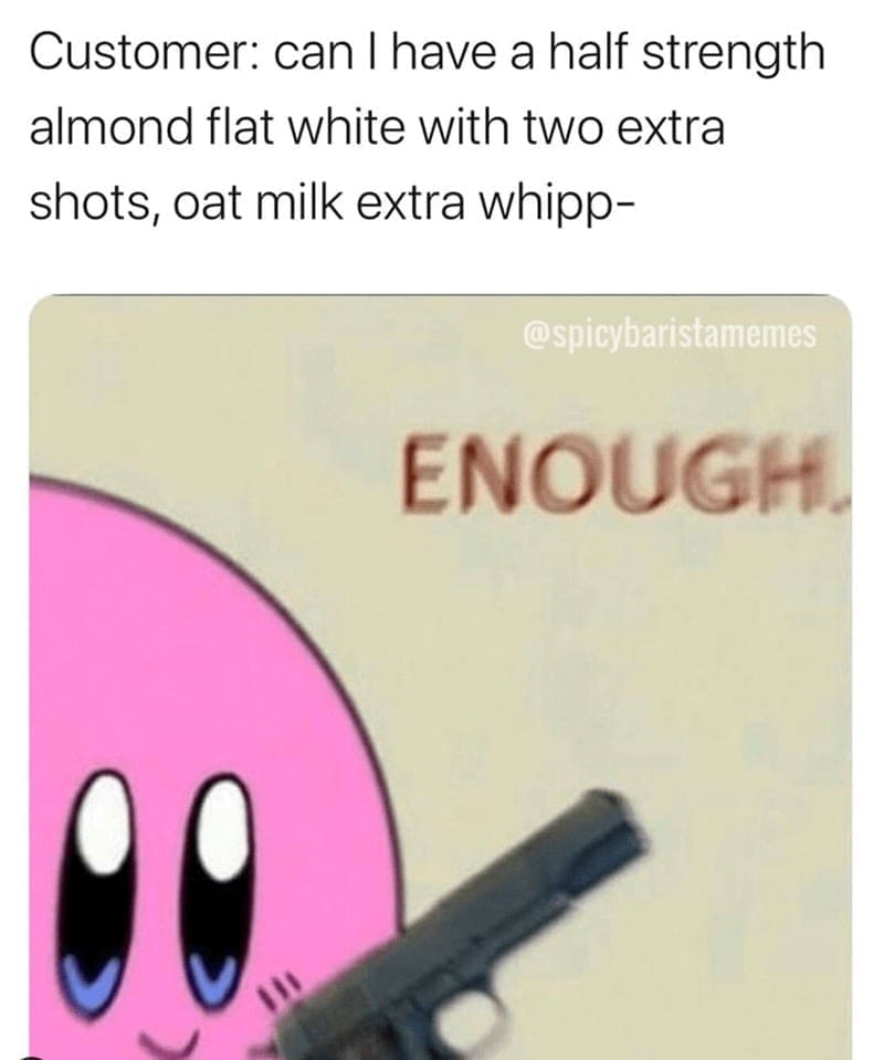 Brace yourself for a full-on caffeine jolt with 39 memes that capture the caffeinated chaos of life behind the espresso machine. These aren't your run-of-the-mill internet chuckles; they're the perfectly brewed, venti-sized jokes serving up the daily grind of working the coffee counter. From deciphering complicated orders that sound more like a secret code to the eternal quest to master the enigmatic art of latte patterns, these memes pour out the bitter-sweet humor of the java industry. People slurp up these posts faster than a frothy cappuccino because, let's be real, there's an unspoken solidarity among those who churn out our morning rocket fuel. So, prepare for a jolt of laughter that rivals the caffeine rush itself!