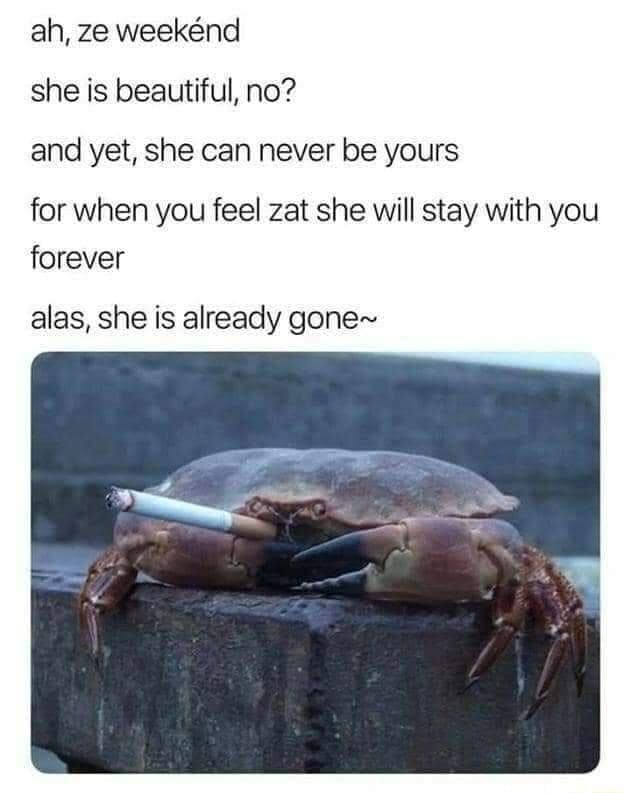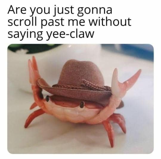 Shell-shockingly funny, buckle up for a journey into the surreal world of crab memes, where crustaceans become the unsung heroes of internet humor. In this deep dive into crabby comedy, we present 30 memes that prove crabs are more than just pinchers – they're the punchlines we never knew we needed. Because why limit humor to humans when you can have crabs stealing the show, right? The everlasting hunger for hilarious crustacean content, crab comedy memes, and shell-shocking laughs is on the rise – because apparently, people have a secret desire for memes that make them crabby in the best way possible. Why the fascination with crab memes, you ask? It's not just about the laughter; it's about the unexpected joy of seeing crabs in roles they were never meant to play. So, what awaits you in this crustacean comedy hour? Get ready for memes that turn crabs into the unassuming stars of the show, from epic pinch-fights to crustacean wordplay. This post isn't just a collection; it's a journey through the untapped potential of crab humor, proving that even underwater creatures can have a comedic edge.