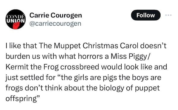Gather 'round, folks, for a festive treat with 24 uproarious memes plucked straight from the timeless classic, Muppet Christmas Carol. Hold onto your stockings because these memes aren't your run-of-the-mill holiday chuckles; oh no, they're a full-blown Muppet extravaganza, primed to make you snort your eggnog like a festive fountain. Prepare to have your jingle bells rocked by familiar faces like Kermit, Miss Piggy, and Gonzo in uproarious scenarios that perfectly encapsulate the chaotic joy of the season. Whether it's Scrooge's grumpy memes or the Ghost of Christmas Present's jolly antics, fasten your seatbelts for a sleigh ride of laughter that'll jingle your funny bones.