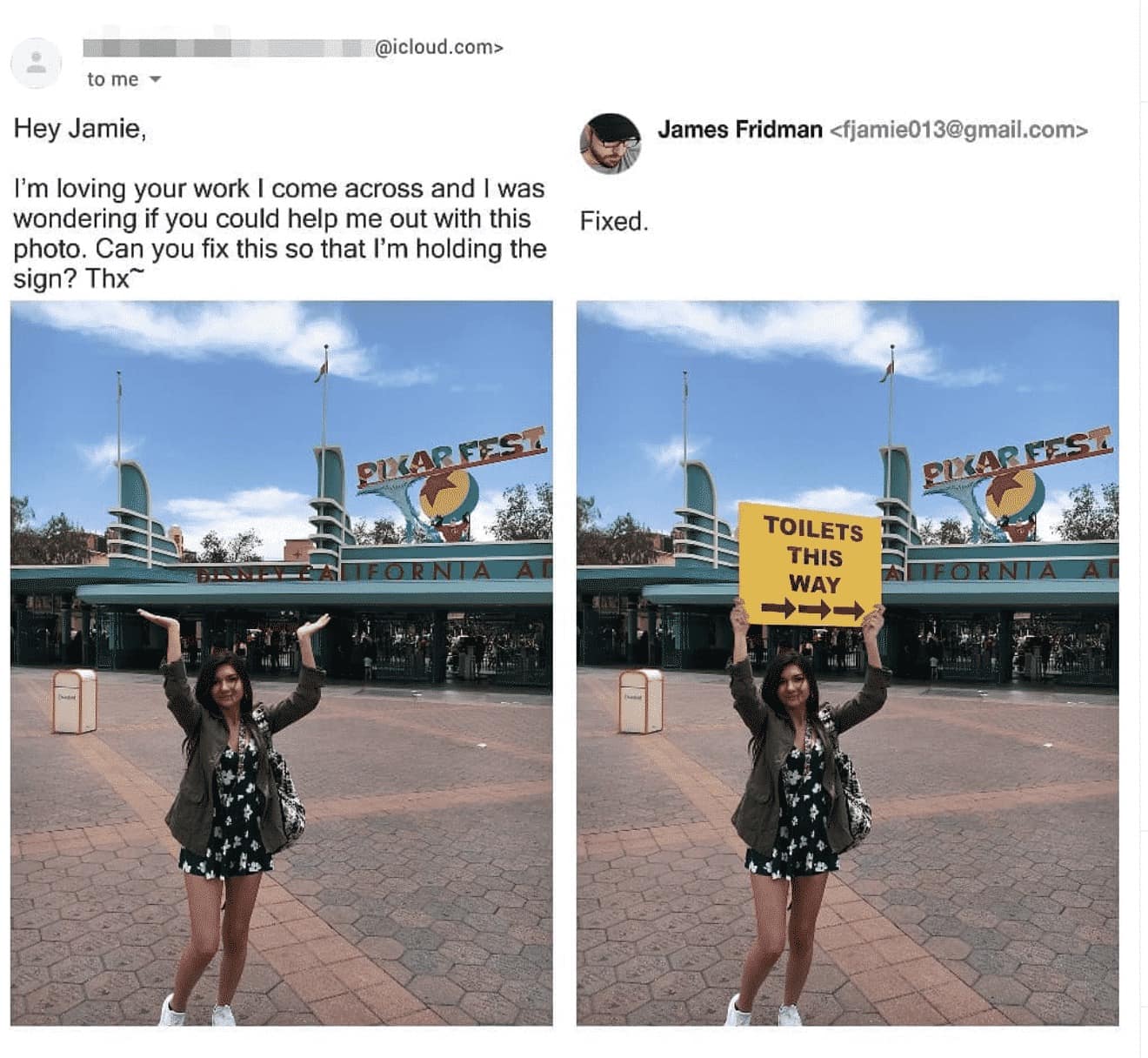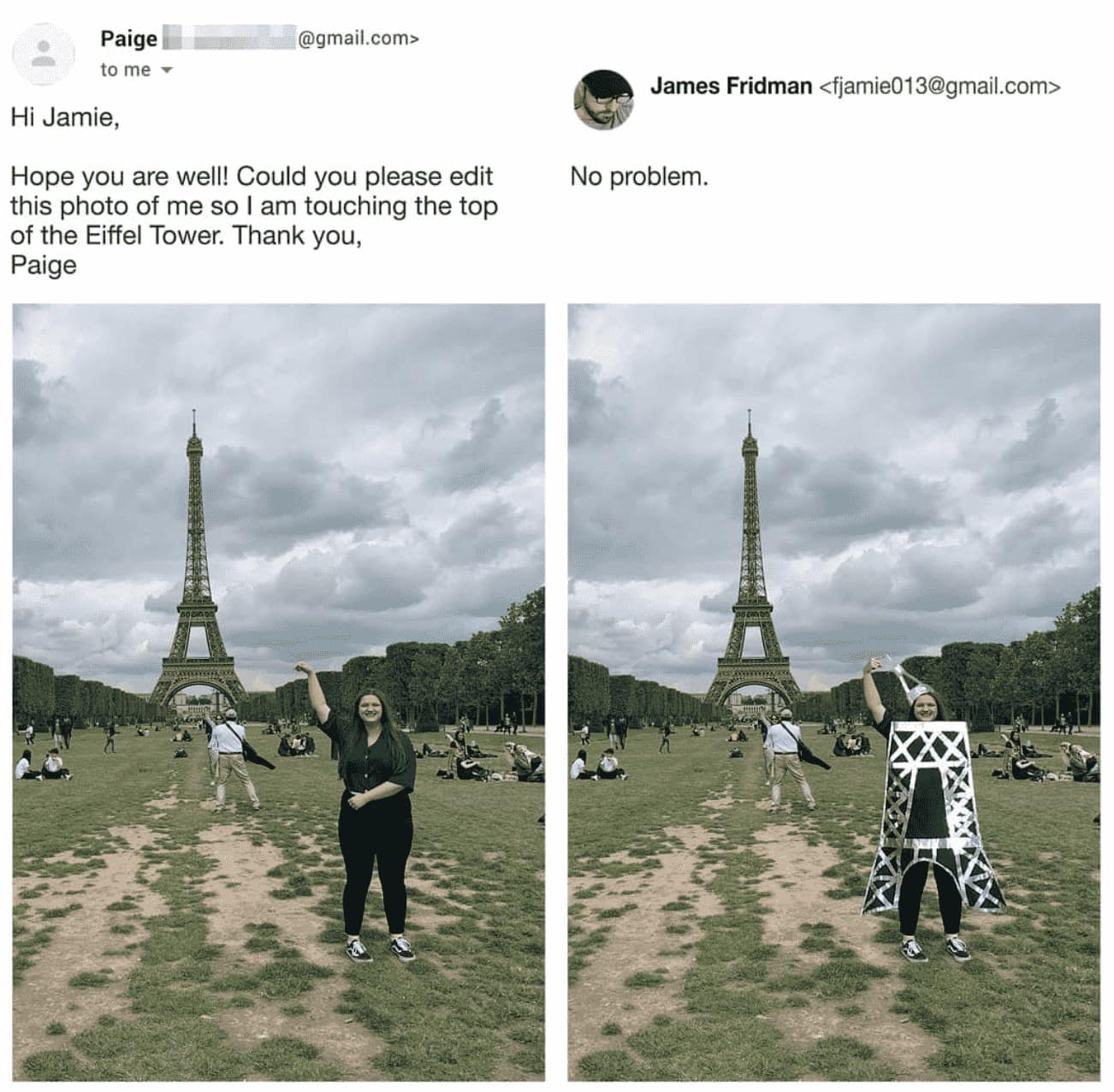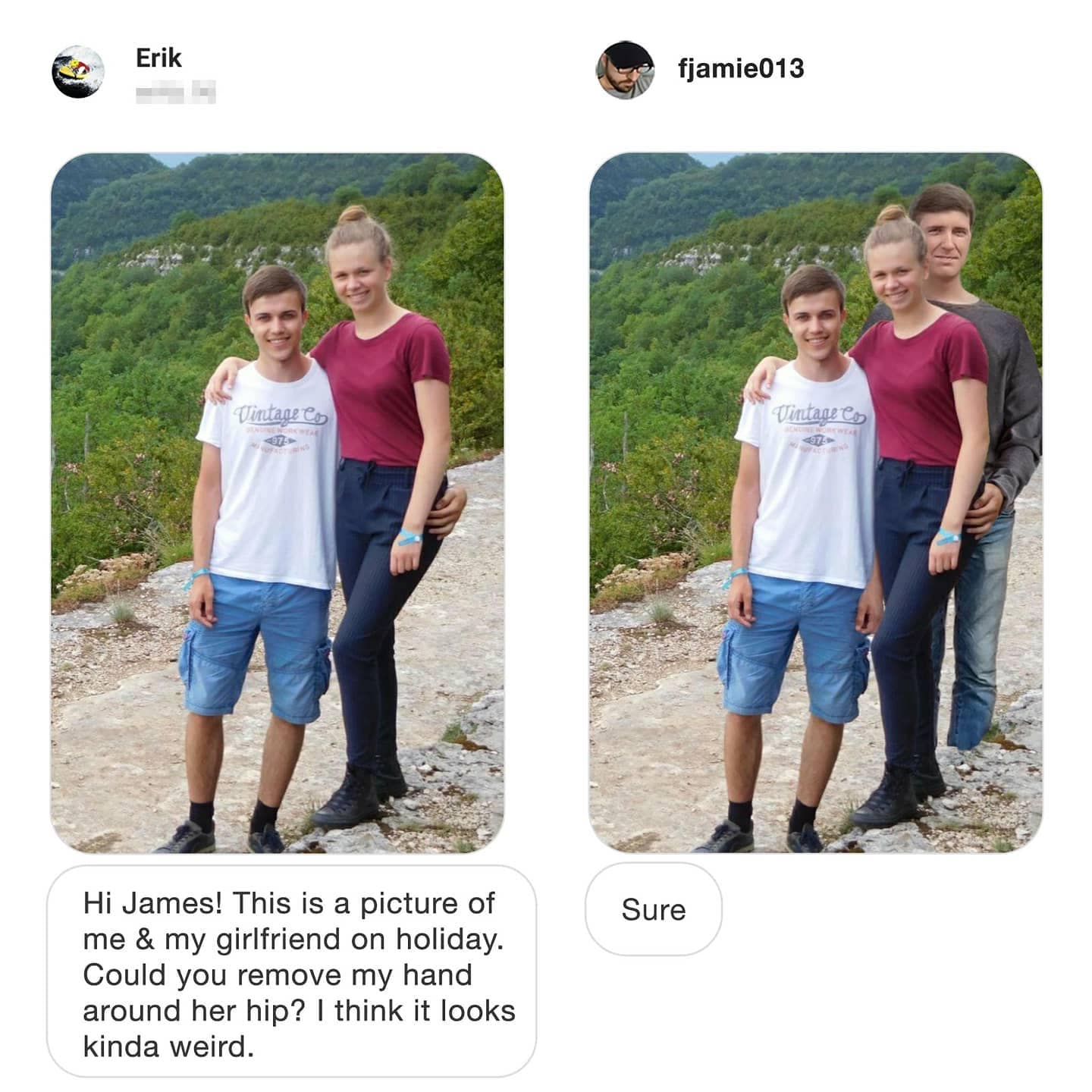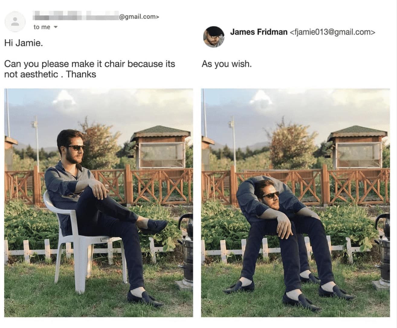Enter the surreal realm where pixels bow to the master of digital wizardry – our showcase of 44 times James Fridman ruled Photoshop, turning ordinary photo requests into comedic masterpieces. In the vast landscape of online creativity, James Fridman has become the crowned jester, wielding his Photoshop prowess with a humor that transcends pixels and tickles the funny bone. These creations, born from the imagination of requesters and the twisted genius of Fridman, are the visual chronicles that blur the lines between reality and hilarity. James Fridman's Photoshop escapades are more than just altered images; they're the virtual escapades where the global online community gathers for a collective chuckle. From requests that veer into the absurd to Fridman's clever twists that redefine the concept of 'fulfilling a request,' this collection is your virtual tour through the imaginative landscape of digital manipulation. So, adjust your pixels, grab a virtual brush, and join the community as we navigate the rollercoaster of Fridman's Photoshop wonders, where each creation is a stroke of genius and a dash of humor. As you immerse yourself in this visual journey – the surreal world within these images may spark a newfound appreciation for the absurdity of Photoshop requests, turning your mundane photo edits into an exploration of comedic possibilities. So, whether you're an aspiring Photoshop wizard or a casual admirer of digital humor, brace yourself for a journey where every image is a testament to the art of controlled chaos, and every scroll is a step deeper into the Fridman chronicles.