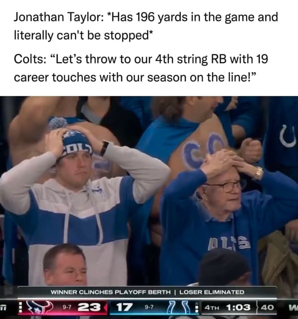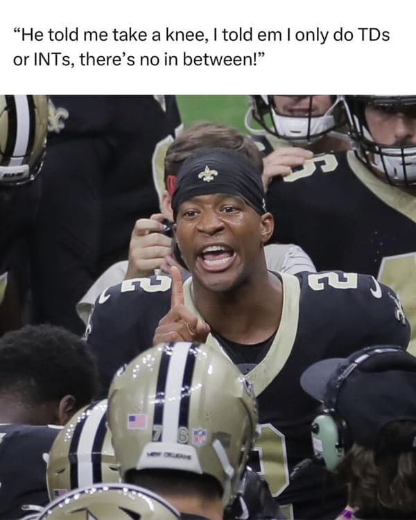Strap on your helmets, football fanatics, for we're diving headfirst into the hilariously chaotic world of the NFL. In a sport where touchdowns and tackles share the spotlight with absurdity, we proudly present 39 NFL Memes—a collection of football funnies that'll make even the most die-hard fan chuckle between downs. Because let's face it, if you can't laugh at the quarterback's questionable dance moves, are you really enjoying football? Huddle up for a laughter-filled scrimmage with 39 NFL memes that take the game to a whole new level of hilarity. From touchdown celebrations that defy gravity to referee decisions more confusing than the rulebook, this collection captures the essence of football fandom—the passion, the confusion, and the unbridled laughter. Get ready for a play-by-play of comedic genius as we tackle the lighter side of America's favorite sport. Imagine a realm where the endzone isn't just a scoring area but a stage for gravity-defying celebrations and referee decisions more perplexing than the rulebook. This meme collection isn't just a sideline view; it's a comedic playbook that captures the passion, confusion, and undeniable hilarity that defines the NFL experience. So, whether you're a seasoned armchair quarterback or just trying to figure out what a two-point conversion is, these 39 memes promise to take your football enjoyment to a whole new level. As we embark on this laughter-filled scrimmage, get ready for a play-by-play of comedic genius that tackles the lighter side of America's favorite sport. Touchdowns may be scored on the field, but in the world of NFL memes, the real victory is the unstoppable wave of laughter that follows every snap. So, football fanatics, strap in for an endzone entertainment extravaganza that'll leave you cheering for the absurdity of it all.