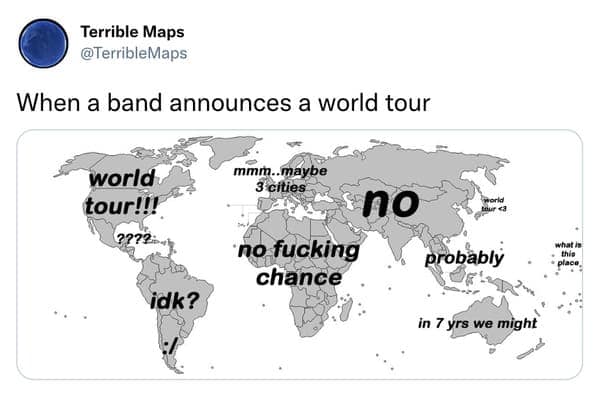 Welcome, fellow navigators and cartography enthusiasts, to the absurd world of Terrible Maps! Brace yourselves for a laughter-infused journey through 24 maps that redefine the meaning of lost and confused. In a world where 'North' is a mere suggestion and 'accuracy' is an alien concept, these Terrible Maps stand tall as the unsung heroes of navigational chaos. Ladies and gentlemen, brace yourselves for a navigational rollercoaster through the bizarre realm of Terrible Maps. Today, we embark on a journey that transcends traditional notions of directionality and spatial coherence. In this collection of 24 cartographic calamities, the focus is firmly on the hilariously misguided, the spatially perplexing, and the utterly lost-in-translation. Prepare to be transported into a world where maps defy logic, and 'North' becomes a mere suggestion. It's a terrain where accuracy takes a back seat, and the only certainty is uncertainty. These Terrible Maps, meticulously curated for your amusement, are not just visual oddities; they are a slapstick comedy of navigational errors. With each map, we delve deeper into the art of getting it spectacularly wrong—roads leading to nowhere, countries undergoing whimsical redesigns, and geographic precision left at the door. So, fellow navigators, fasten your seatbelts as we navigate through a collection where 'lost' is not just a location; it's a state of mind. These Terrible Maps redefine confusion, turning each navigational misstep into a laugh-inducing masterpiece. Let the cartographic chaos commence!