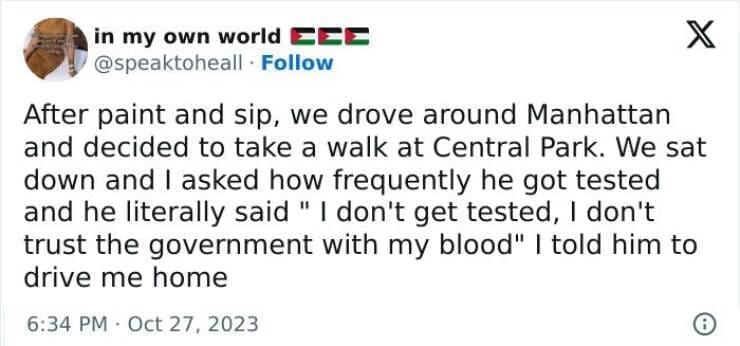 The date was okay but afterwards he threatened to call the police on me cause I wouldn't sleep with him + he sat camped out in front of my house for like an hour, than obessesively texted paragraphs the next day. This man was 48 years old btw.