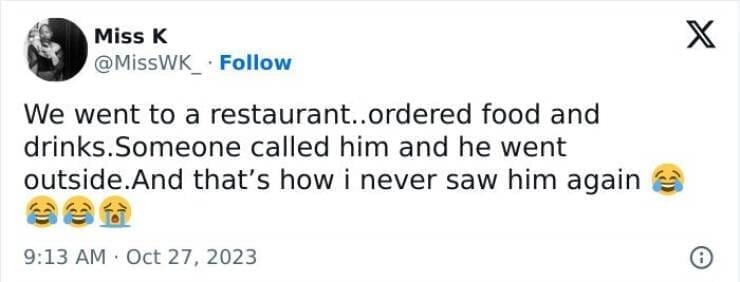 On our first date he showed up with his 2kids, didn't tell me he had kids. They were not well behaved at all f shouting and running everywhere © I also ran but away