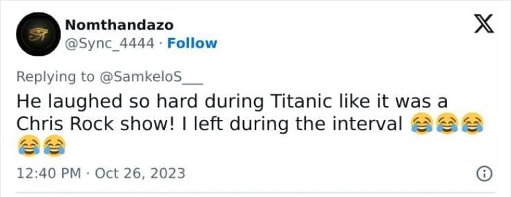 Worst first date stories Took her to the cinema, hun was loud af, reacting to EVERYTHING!!. shouting, cheering, clapping... screaming "baleka!" It was like how your grandma used to react to wrestling. At some point I looked around & everybody was looking at us