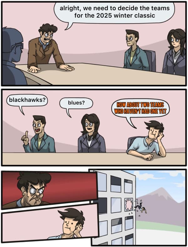 Hockey (or ice hockey as the Europeans specify for some reason - the sport of kings, or so they say. But let's be real here, folks, behind the intense matches and bone-crunching hits lies a treasure trove of comedic gold just waiting to be unearthed. So, strap on your helmets and get ready to hit the ice as we embark on a rip-roaring journey through the wild world of hockey memes. From clever jabs at players and teams to satirical takes on game-day rituals, these memes are the perfect blend of slapstick and slapshot, guaranteed to leave you grinning from ear to ear. And let me tell you, folks, there's no shortage of laughs to be had here. With 42 side-splitting NHL memes and hockey memes at your fingertips, you'll be in for a rollercoaster ride of hilarity that'll have you clutching your sides in stitches. So, whether you're a die-hard fan or a casual observer, get ready to see the sport in a whole new light as we dive headfirst into the lighter side of hockey fandom.