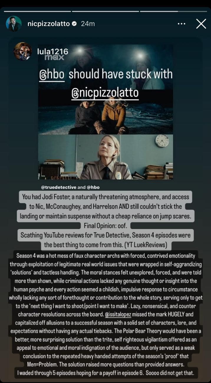 Ah, the twisted tale of True Detective: Night Country – a television series that promised intrigue, mystery, and enough convoluted plot twists to make your head spin faster than a detective on a caffeine bender. As the show's fourth season recently drew to a close, audiences were left scratching their heads and wondering whether they had just witnessed a stroke of genius or a colossal waste of time. True Detective season 4 had the internet buzzing with opinions as polarized as a broken compass. From the get-go, Night Country divided audiences faster than a detective interrogating a suspect. Some hailed it as a masterpiece of storytelling, while others likened it to a dumpster fire in slow motion. And as the season finale aired, the internet erupted with a cacophony of True Detective memes, each one more savage than the last.