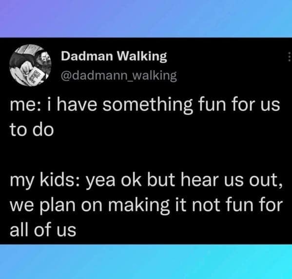 Dive into the trenches of parenthood as you scroll through these gems, each one serving as a beacon of light in the midst of the daily grind. Whether you're nodding knowingly at the depiction of toddler tantrums or chuckling at the antics of sleep-deprived parents, these memes provide a much-needed dose of humor in an often chaotic world. So, grab your favorite beverage (caffeine optional but highly recommended) and prepare to embark on a journey of laughter and solidarity with fellow parents navigating the wild ride of raising kids.
