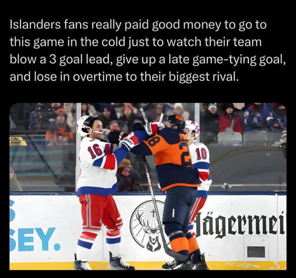 Get ready to hit the ice with 34 memes that are guaranteed to score big laughs. Each meme is a slapshot of sarcasm and wit, capturing the essence of the NHL with ruthless humor and unparalleled accuracy. From epic goalie saves that defy the laws of physics to bone-crushing body checks that leave players seeing stars, these memes leave no aspect of hockey untouched by laughter. Whether you're a die-hard fan who bleeds your team's colors or just someone who enjoys a good laugh, these memes are sure to have you skating on thin ice with laughter. So grab your stick, lace up your skates, and get ready to score big laughs with our hilarious hockey meme collection.