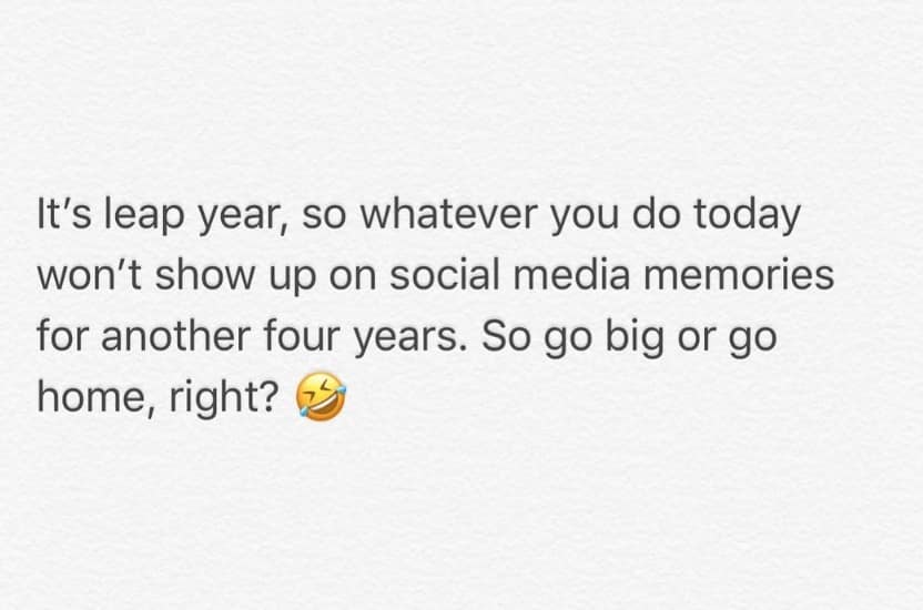 Celebrate the once-in-four-years occasion of Leap Day with our curated collection of 25 jokes that capture the spirit of this unique day. Whether it's jokes about leap years or jumping forward into the unknown, each meme adds a humorous twist to the concept of time and the quirks of our calendar system. As you scroll through this collection of Leap Day memes, you'll encounter witty captions, clever graphics, and relatable scenarios that playfully explore the idea of an extra day in the year. From poking fun at the confusion surrounding Leap Day to embracing the opportunity for an additional 24 hours of fun (or unfortunately, work) these Leap Day memes are guaranteed to bring a smile to your face. And if it's your birthday today, consider this your gift! Don't expect another one from us for the next 4 years.