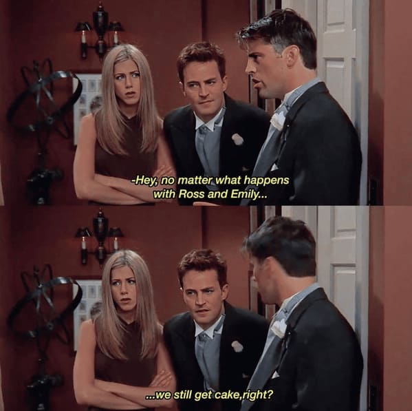 After indulging in this collection of Friends memes and jokes, you're undoubtedly reminiscing about your favorite moments from the show with a smile on your face. With each meme, you chuckled at the clever references, nodded in agreement at the relatable scenarios, and maybe even shed a tear of laughter. We hope you enjoyed this delightful trip down memory lane that'll leave you feeling warm and fuzzy inside.