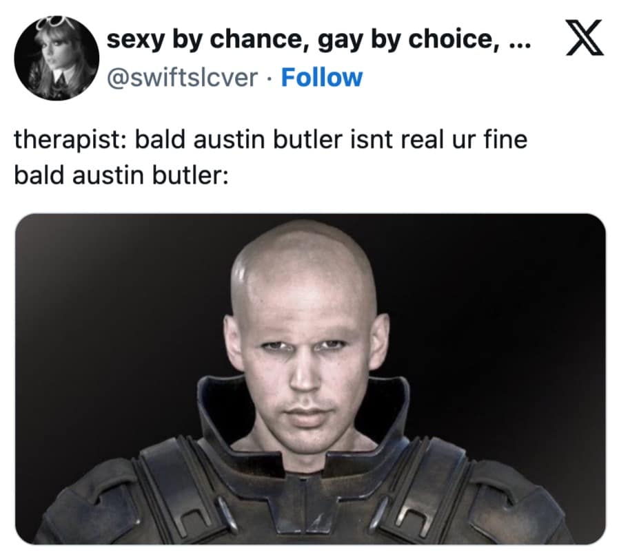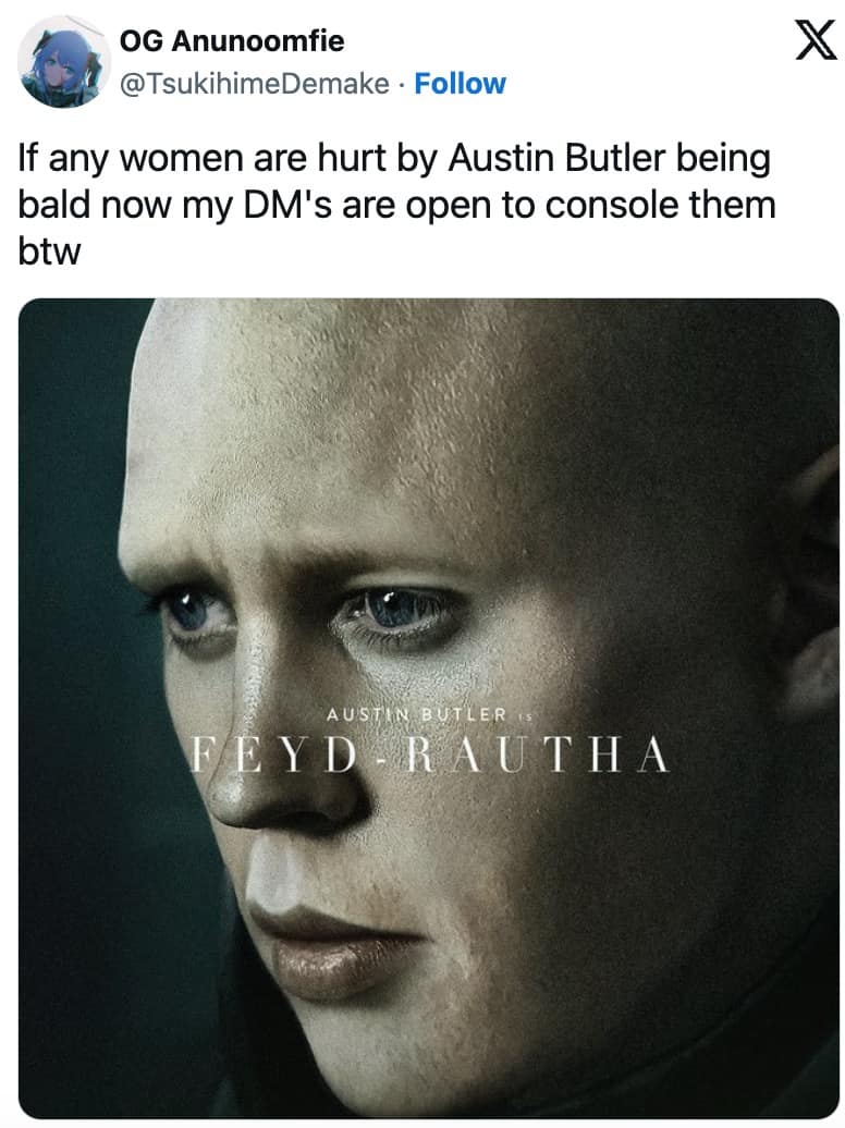 22 Austin Butler bald memes and people reacting to his look in Dune 2