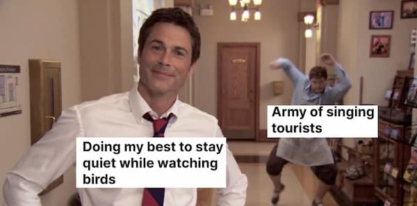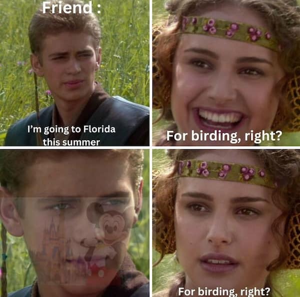 Prepare to take flight on a journey through the avian kingdom, where each meme is a whimsical snapshot of the quirks and delights of birdwatching. Whether it's a clever caption accompanying a majestic bird in flight or a humorous observation about the peculiar habits of our feathered friends, each of these birding memes invites you to perch on the branch of internet humor and enjoy the view from a bird's-eye perspective.