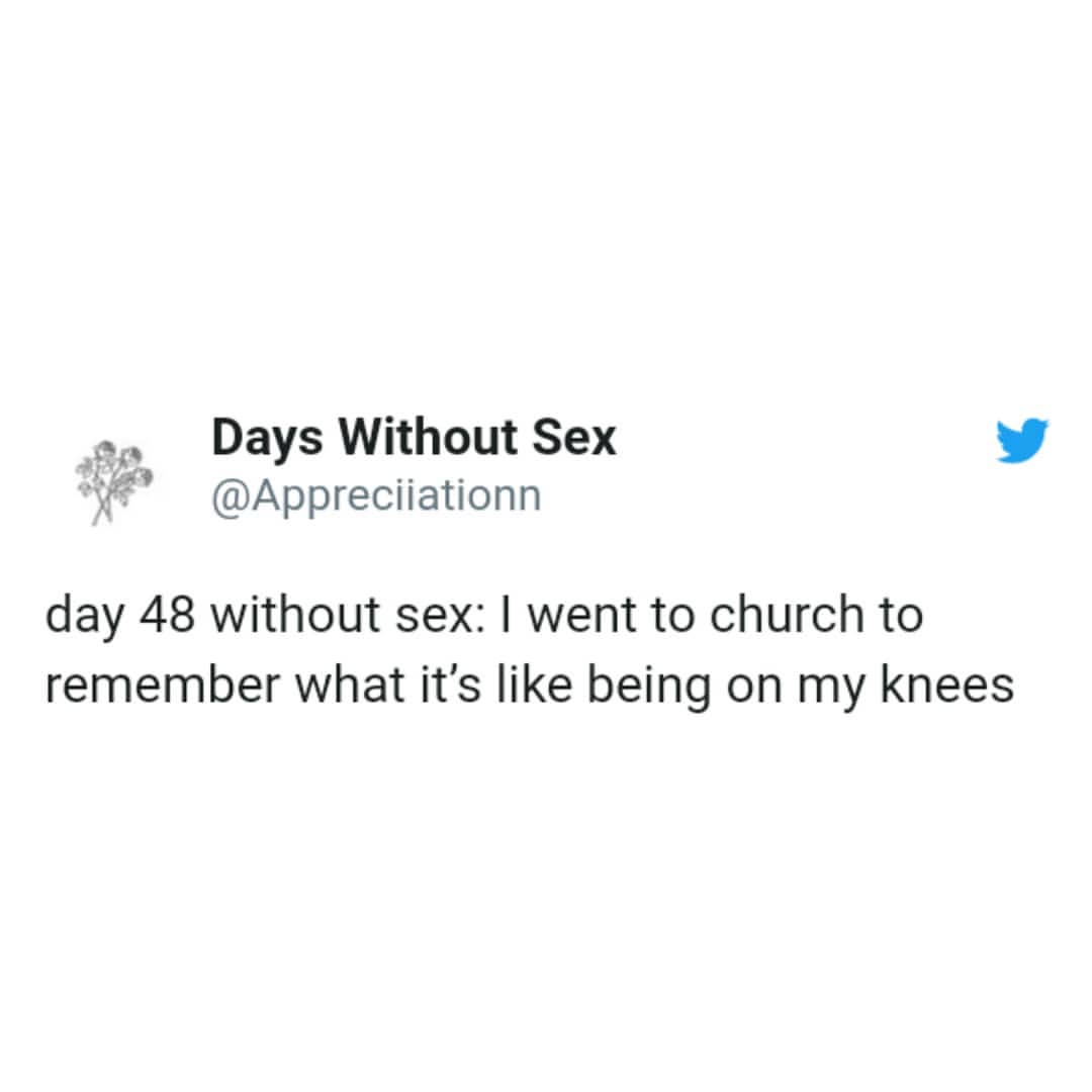 Picture this: you're scrolling through your feed, feeling the weight of each passing day without a romantic rendezvous. Suddenly, you stumble upon our curated collection of 35 uproarious memes, each serving as a beacon of laughter in the desert of affection. These memes capture the absurdity of prolonged abstinence with wit, humor, and a healthy dose of self-deprecation. From sarcastic quips to tongue-in-cheek observations, each meme offers a comedic respite from the dry spell blues. Explore the humorous side of romantic deprivation as you dive into our curated selection of memes that are as relatable as they are amusing.