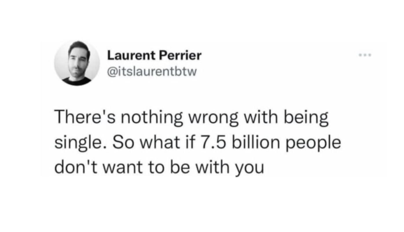 There's nothing wrong with being single. So what if 7.5 billion people don't want to be with you
