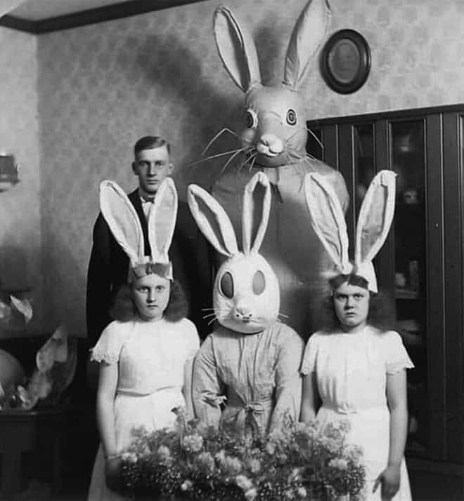 Prepare to have your childhood Easter memories twisted into something unrecognizable. This collection of 35 creepy Easter photos is a treasure trove (or perhaps a trash trove?) of unsettling Easter imagery. We've got giant, vaguely menacing bunnies with glowing eyes. We've got Easter baskets overflowing with… questionable contents (let's just say plastic eggs weren't always a thing). And we've got enough awkward family photos featuring ill-fitting Easter outfits to make your skin crawl.