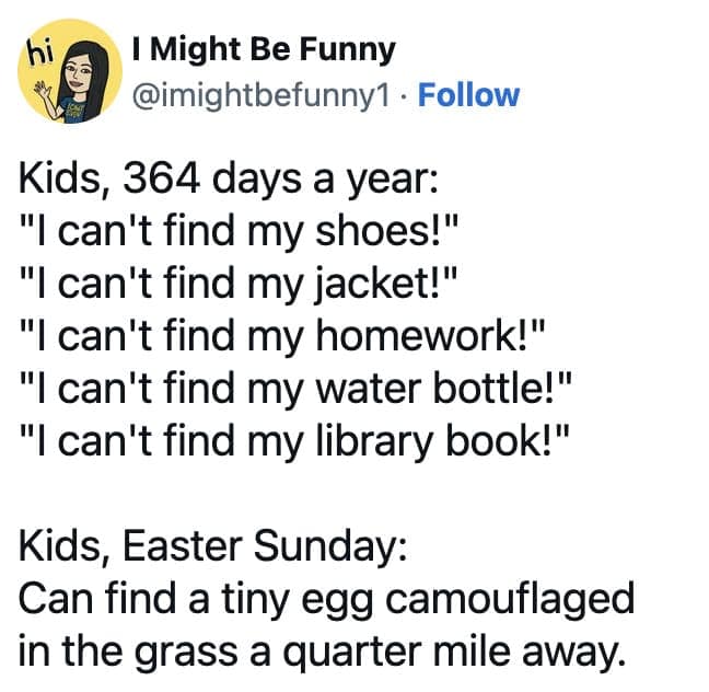No matter how you spent your Easter weekend, these funny Easter tweets offer a relatable and humorous take on the holiday. You'll likely have found yourself nodding along, giggling in recognition, and maybe even sharing a few of these tweets with your own followers.