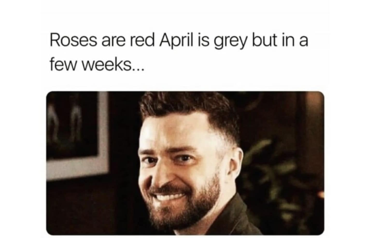 Roses are red April is grey but in a few weeks...