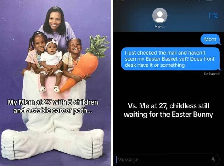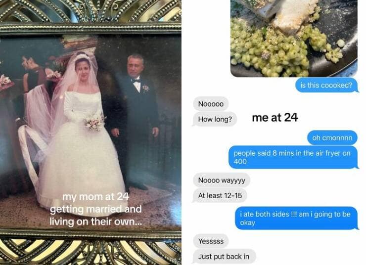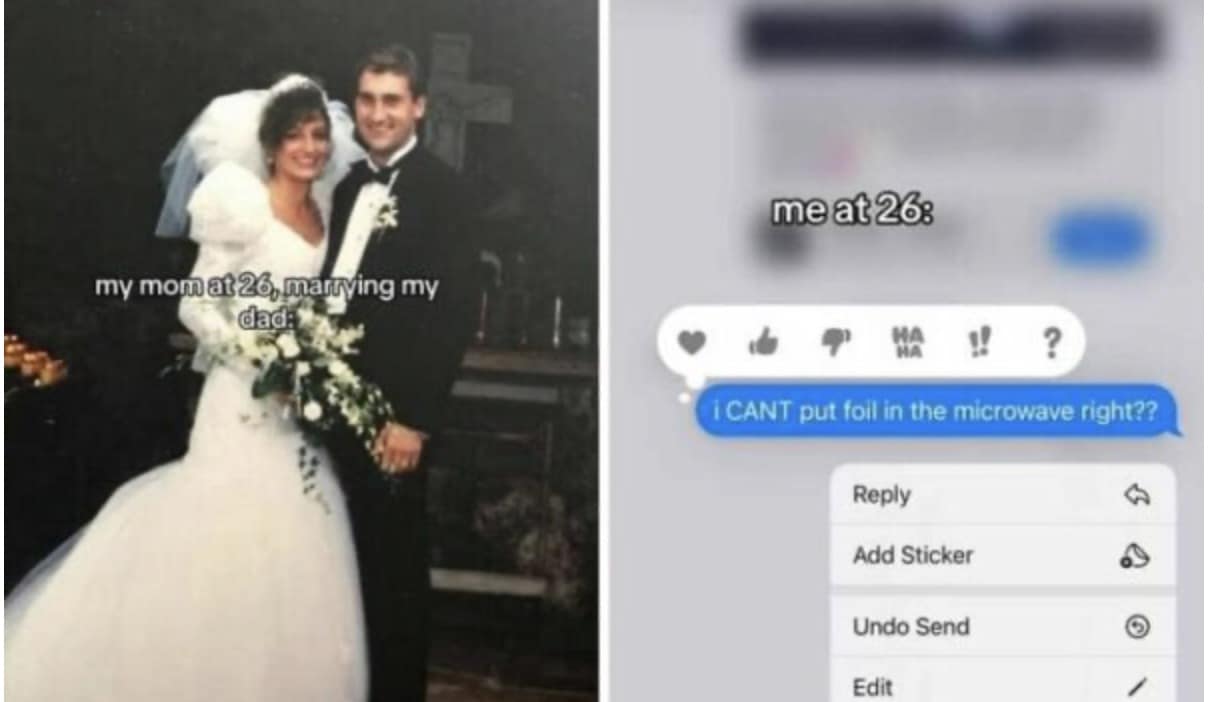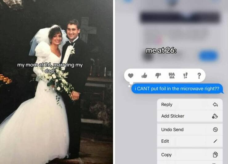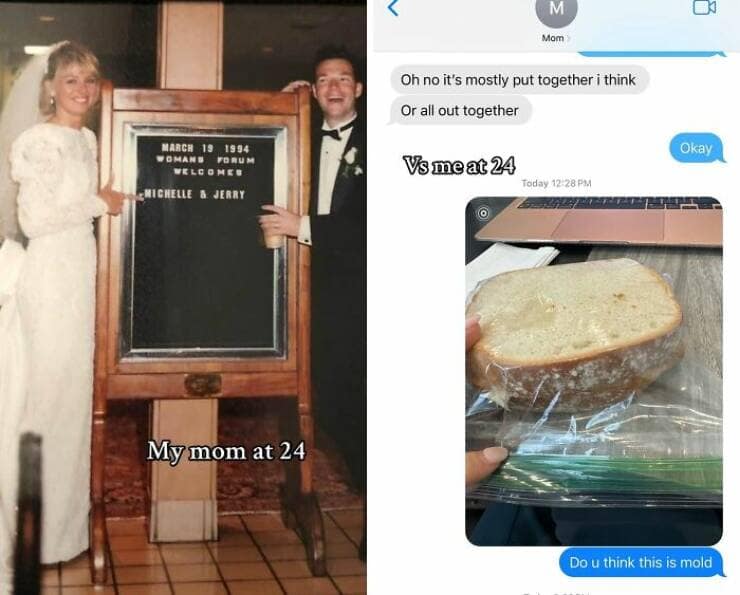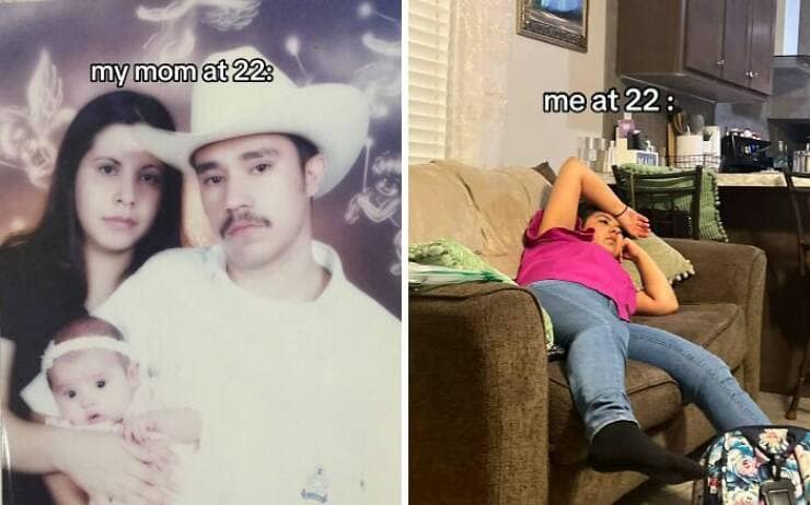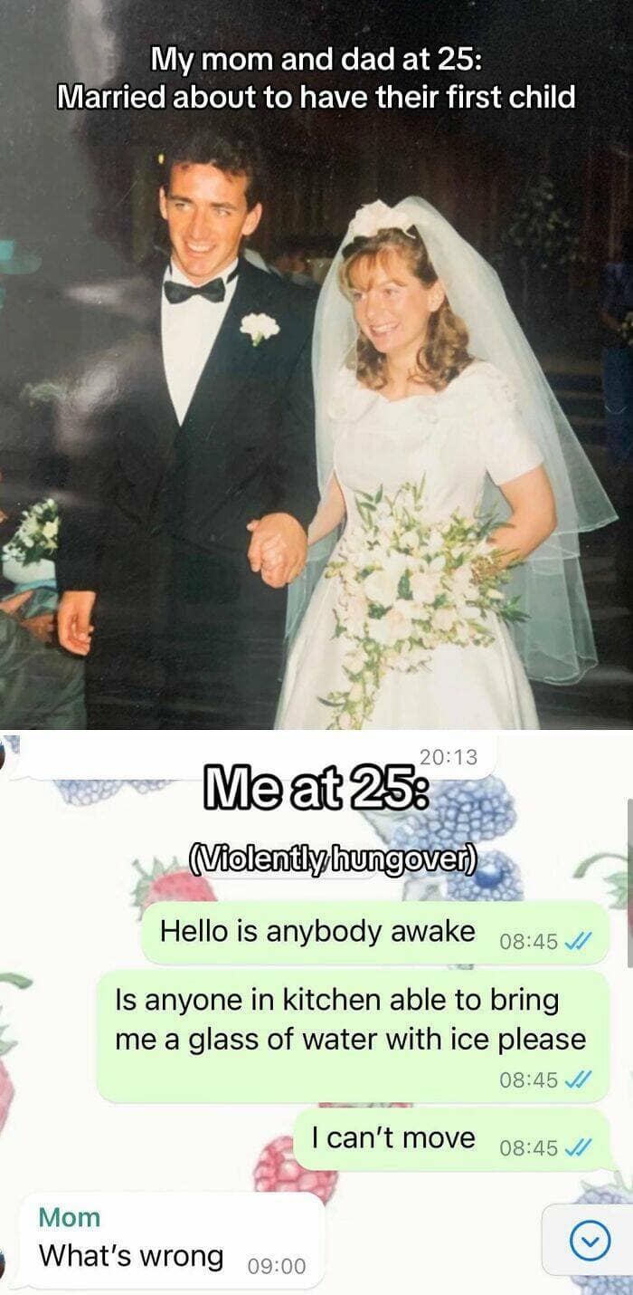 Social media trends come and go faster than the attention span of a toddler hopped up on pixie sticks. But some trends, like the current "My Parents at 25 vs. Me at 25" craze, manage to capture a deeper truth that leaves us snorting out laughter laced with a hint of existential dread. Here I am, at the ripe old age of 25, staring down a mountain of student loan debt, my most prized possession being a slightly burnt microwave and a questionable collection of takeout menus. Meanwhile, my parents at 25? Apparently, they were out there conquering the world, complete with mortgages, matching sweatsuits, and enough confidence to rock mullets without a shred of irony. So, buckle up, millennials and Gen Z, as we delve into the hilarious yet soul-crushing world of "My Parents at 25 vs. Me at 25" in 35 gut-busting side-by-sides.