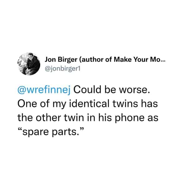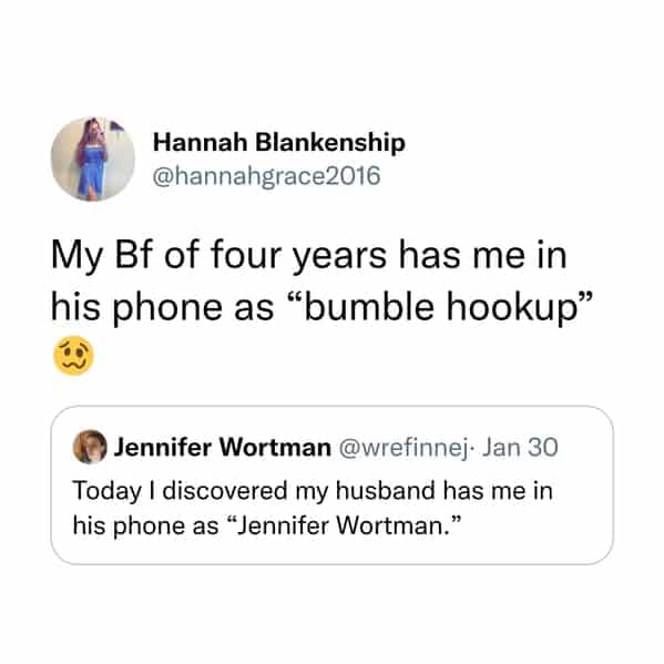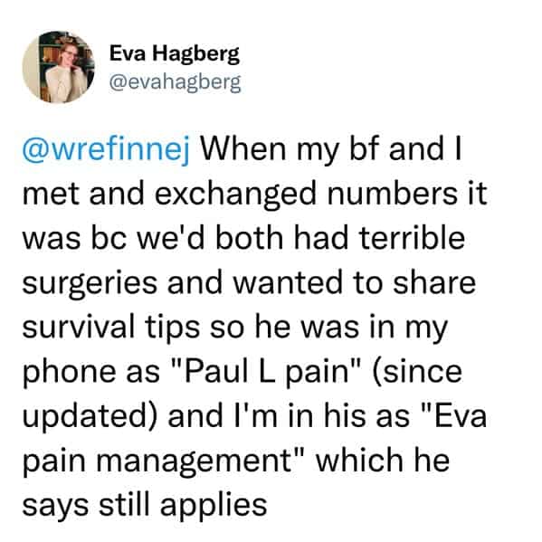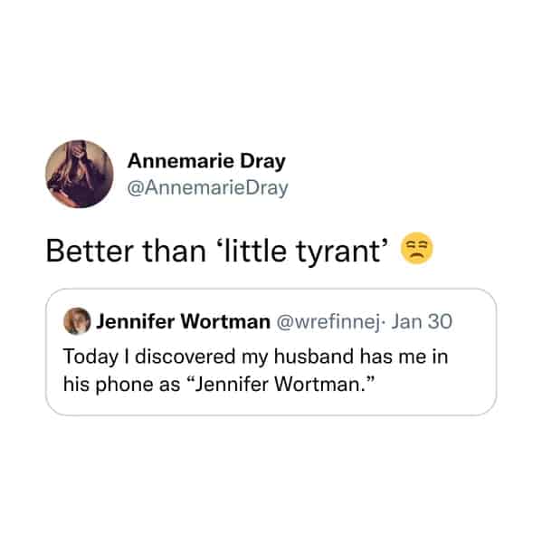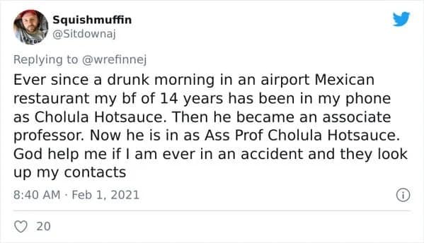 You've just embarked on a voyeuristic journey through the phone contact lists of strangers (well, kind-of-strangers thanks to anonymity). You've chuckled at the passive-aggressive brilliance of "Never Replies" and "MIA Roommate." You've marveled at the creativity of "Hurricane Susan" (you know exactly who that is) and "Walking Spoiler" (definitely not the friend to take to the movies). There may have even been a moment of recognition when you saw "Loan Shark Dad" (we've all been there).