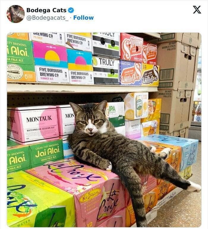 You scrolled through a gallery of 25 photos, each one a glimpse into the world of the all-powerful bodega cat. You chuckled at the sight of majestic (at least in their own minds) felines who had transformed cardboard boxes into thrones, ruling their retail domains with an air of nonchalance that could only be described as regal. The champions of countertop lounging captivated you with their expressions, a hilarious mix of entitlement and pure relaxation. The evidence of mischief, from catnip-induced toy massacres to casually swatted displays of merchandise, brought a smile to your face. Yet, these scheming exteriors might hold a soft spot for the customers, as evidenced by the occasional photo of a bodega cat nestled in a shopper's bag. Whether supervising checkout or napping on a bag of cat food (because, of course, meta!), these furry supervisors added a unique charm to the corner store experience.