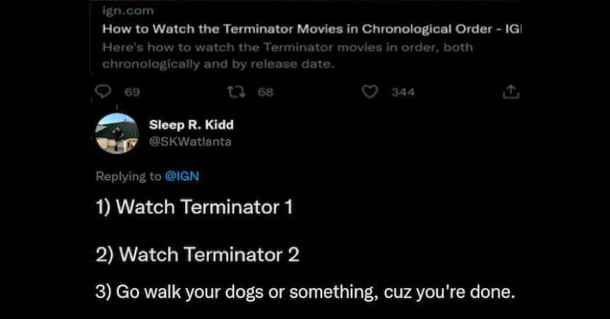 Feeling strangely compelled to rewatch the movies after this laughter-induced infiltration of Terminator memes? Don't worry, it's a perfectly logical response. In fact, we recommend grabbing some popcorn, firing up your streaming service (resistance is futile against the internet), and reliving the classics. And while you can't do that here, we do have childhood movie memes and lots of upcoming movie trailer reactions to get you going. After all, a little meme-based reminder of the importance of sunglasses and leather jackets (who knew they were so essential for fighting cyborgs?) is a small price to pay for hours of entertainment.