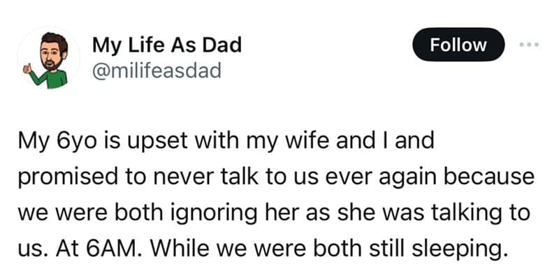Ah, parenthood. The joy of raising tiny humans who demand constant attention and seem to thrive on chaos. It's also a treasure trove of hilarious moments that would make Freud himself do a double take. This collection of 40 funny parenting tweets celebrates the sheer absurdity of everyday life with kids. So, pour yourself a strong cup of coffee (you're going to need it), settle in for the ride, and prepare to laugh out loud (because sometimes, laughter is the only medicine for sleep deprivation and sticky fingers)