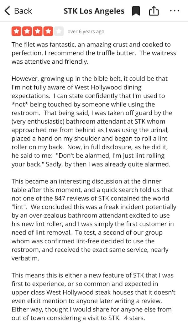 If these funny Yelp reviews brightened your day, there's plenty more where that came from. Explore our other posts featuring hilarious Amazon reviews, or pop over to one of our galleries of the most ridiculous lies you can find online. Whether you're in the mood for more humor or just want to marvel at the creativity of angry reviewers, our collection has something for everyone. Keep laughing and remember, the internet is a never-ending source of entertainment. Until next time, happy reading!