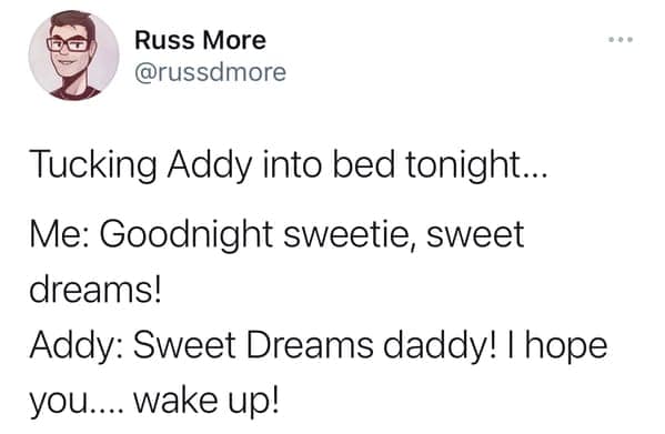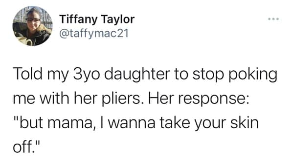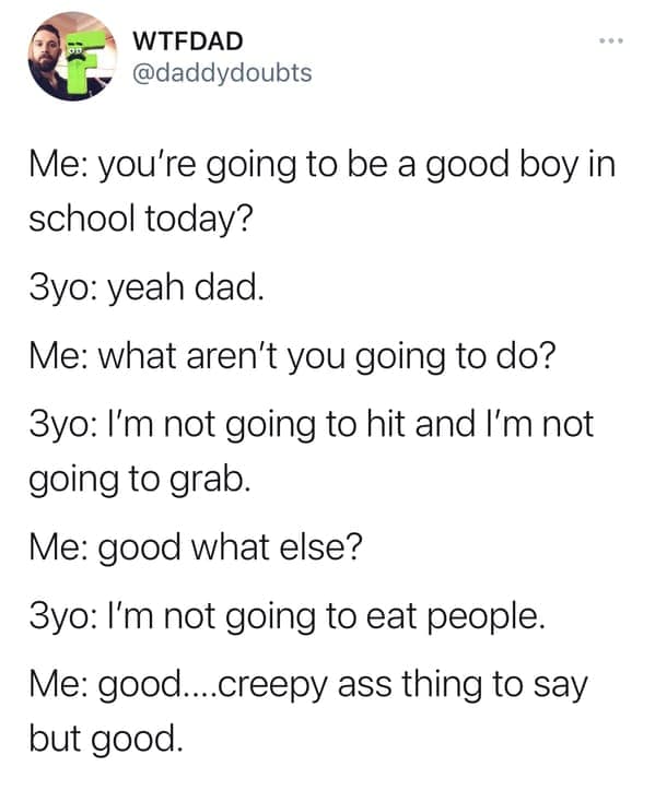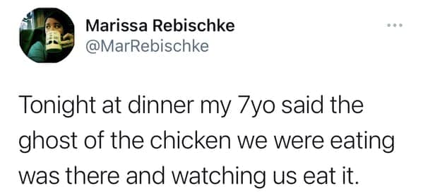 Ah, children. Bundles of joy, sure, but also champions of the unexpected, the nonsensical, and the downright creepy. This collection features 30 tweets from parents who've encountered the unsettling side of their little angels. Prepare for unsolicited pronouncements about past lives, hair-raising claims of imaginary friends, and observations that leave you questioning your parenting skills (and maybe your sanity).