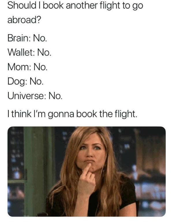 After flying through these travel memes, you probably found yourself laughing at the all-too-familiar scenarios depicted. Each of these captured a slice of the holiday experience, from the anticipation of departure to the inevitable travel hiccups. The humor was spot-on, resonating with your own travel adventures and mishaps. By the end of your scroll, you likely felt a mix of nostalgia and excitement for your next vacation, appreciating the humorous take on the many facets of travel life.