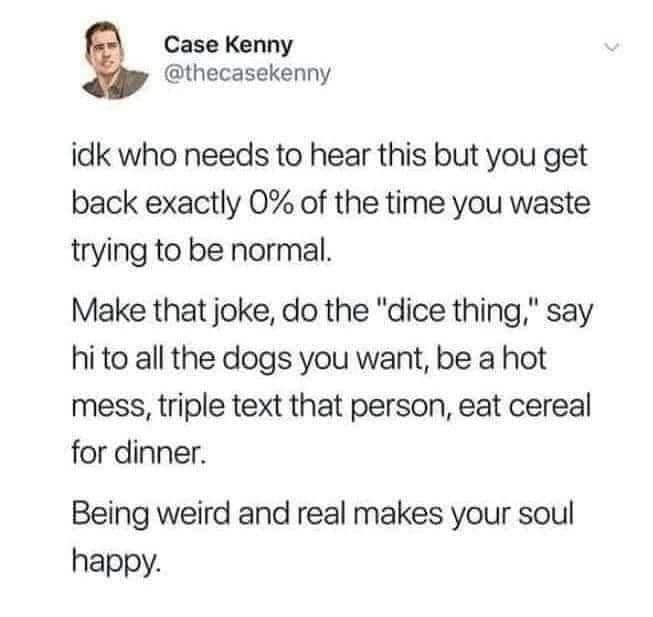 This collection of odd inspirational quotes is here to shake up your usual dose of motivation. These quotes defy the conventional wisdom of motivational sayings and offer a fresh, if slightly strange, perspective. Each quote in this gallery challenges the norm with its unique and sometimes bizarre take on inspiration. From peculiar analogies to downright strange metaphors, these quotes use their oddity to push you out of your comfort zone. This collection focuses on themes like unconventional wisdom, quirky motivation, and unique life perspectives, making it a fascinating journey through the unexpected.