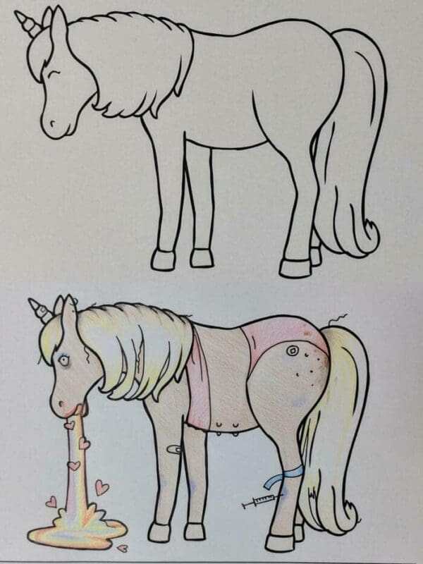 After exploring these 40 corrupted coloring books, you likely found yourself laughing at the clever and dark humor adults have infused into these innocent pages. Each image provided a unique and unexpected twist, transforming ordinary coloring book scenes into hilarious adult parodies. This collection was a delightful journey through the creative and sometimes twisted minds of those who dare to color outside the lines, offering plenty of laughs along the way.