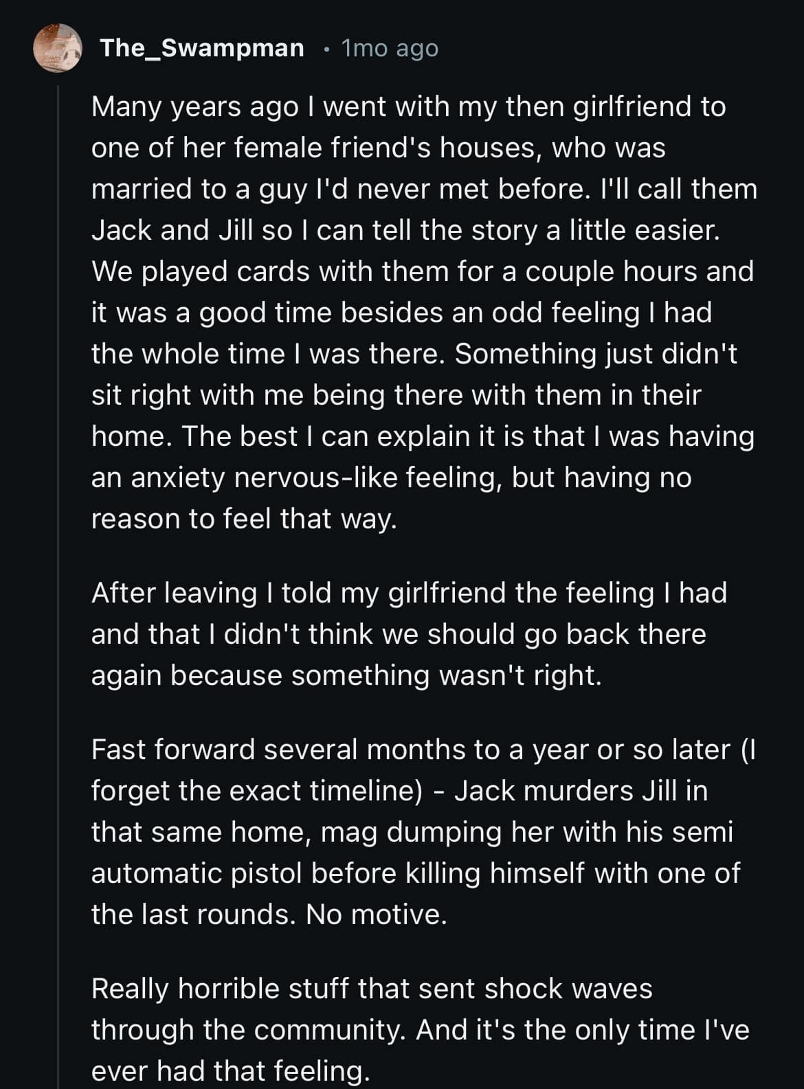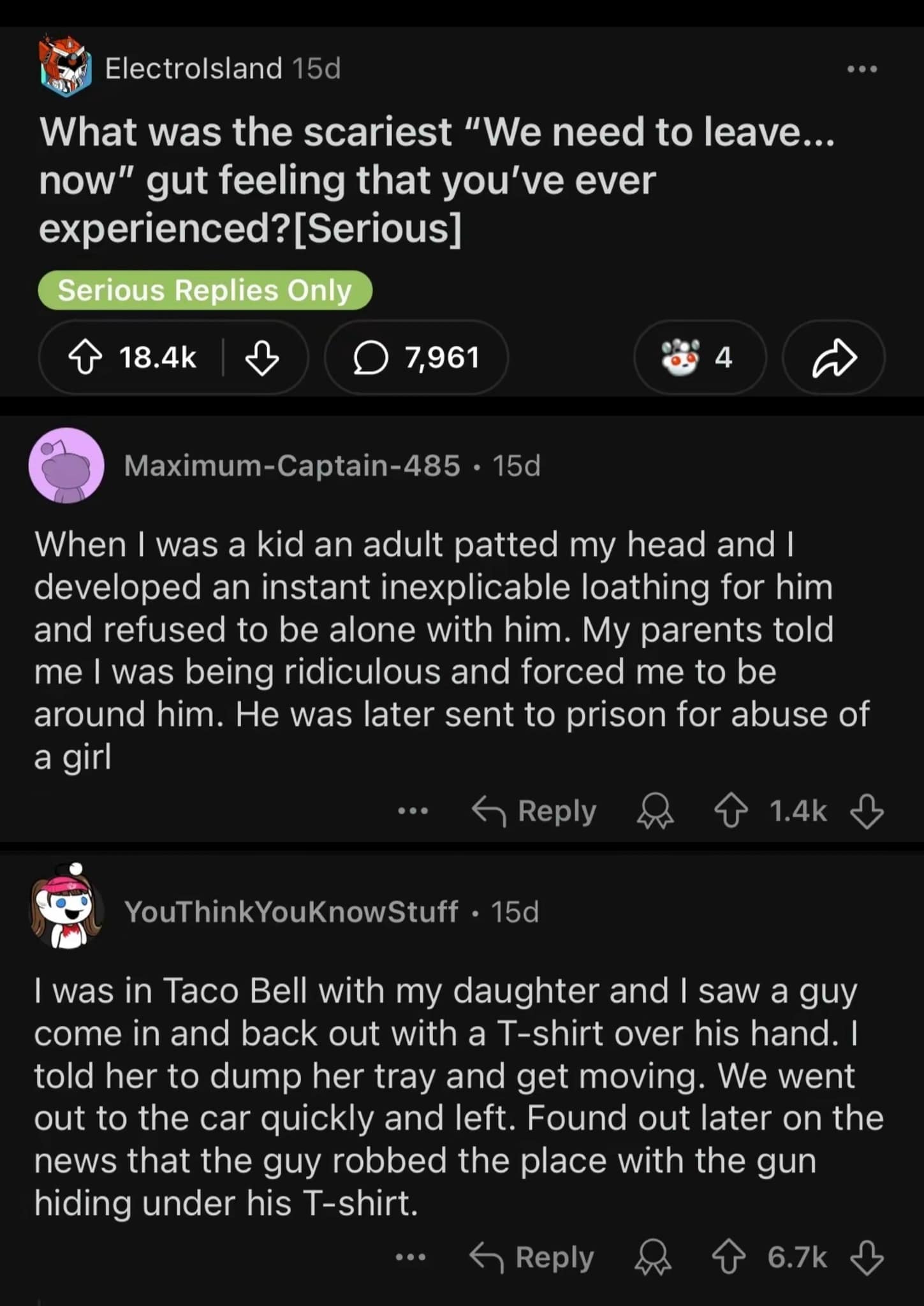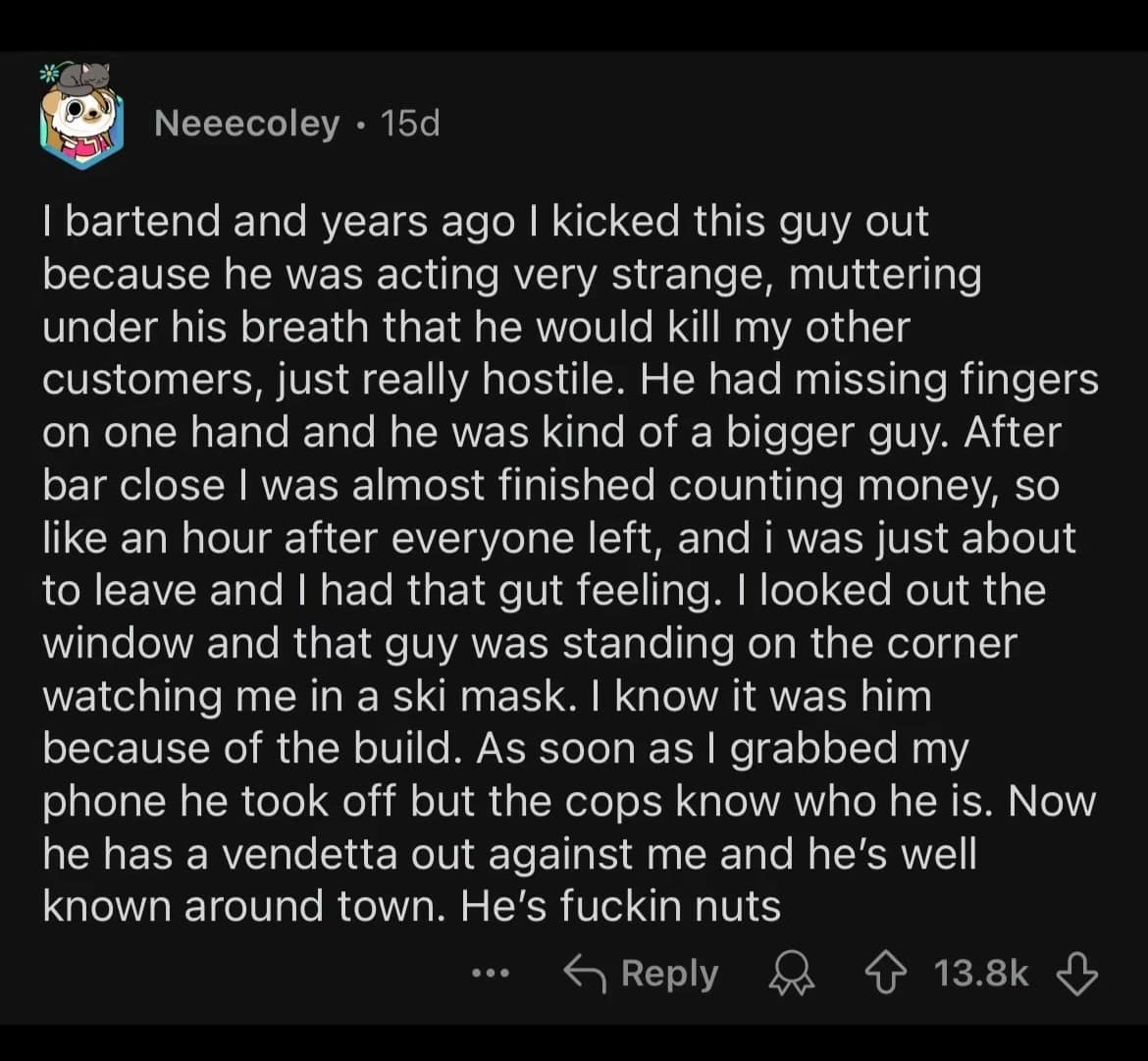 This collection of 16 stories from Reddit highlights the scariest "we need to leave" moments experienced by users. Each story is a testament to the power of intuition and the primal instinct for self-preservation. As you read through these chilling accounts, you’ll be drawn into the unsettling details and the sheer urgency that drove these individuals to act. From creepy strangers to ominous situations, these stories serve as a stark reminder of the dangers lurking just out of sight. Trust your gut as you delve into these harrowing tales, each one a powerful narrative of survival and intuition.